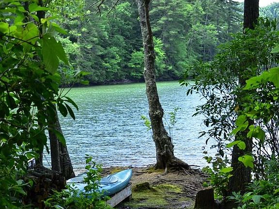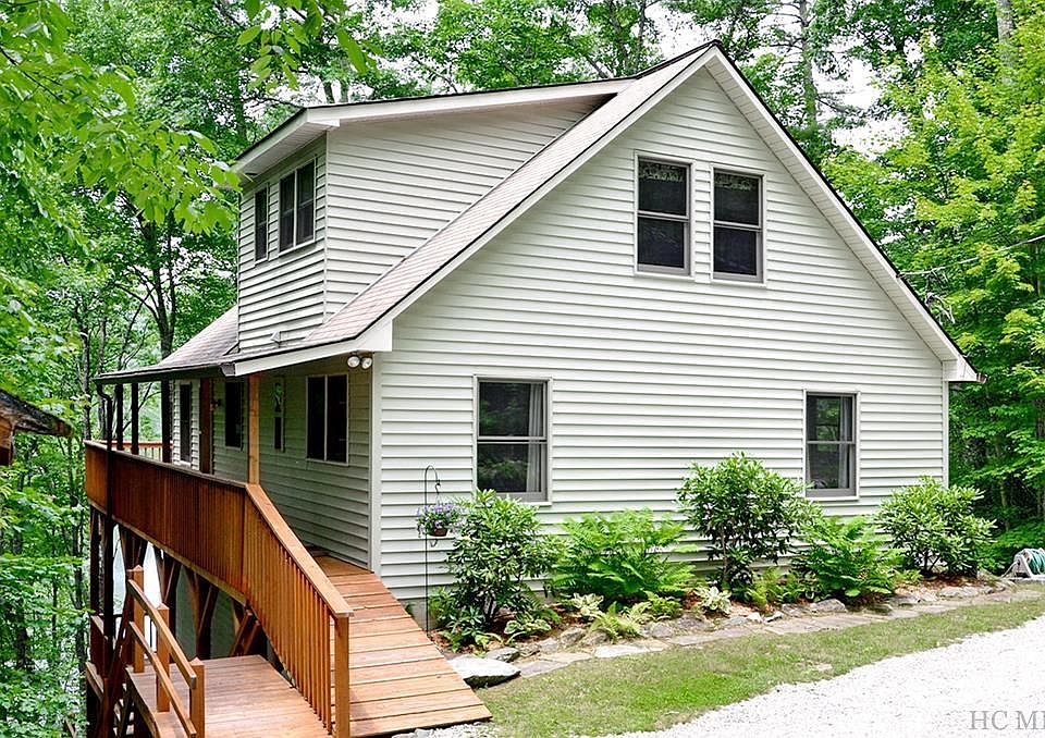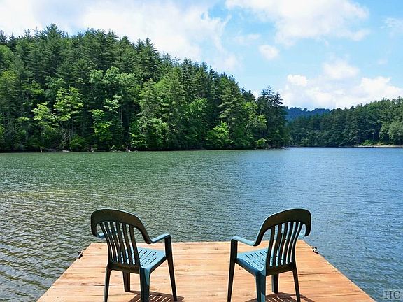 This charming two bedroom, two and a half bath Cape Cod style home sits right on Lake Glenville, on a large one-acre lot with a private dock, beautiful views and approximately 100 feet of shoreline. Tucked away in a scenic cove, it is surrounded by lush rhododendron, laurel and mature hardwoods. The main level is light and bright with lots of windows, plus rich wood floors and an open kitchen with island. Additional features include cathedral ceilings and double decks, as well as a bonus room, lower level, loft, brand new roof and A/C, and an enchanting trail to the lake. The property has been lovingly maintained and is move-in ready, with easy access and no steep roads.