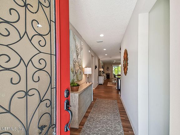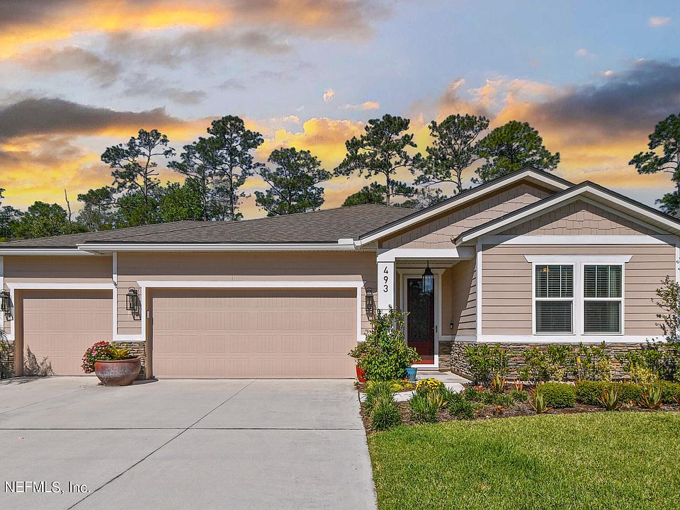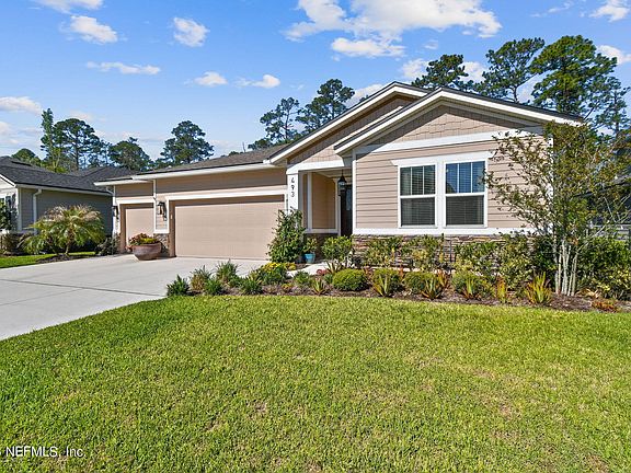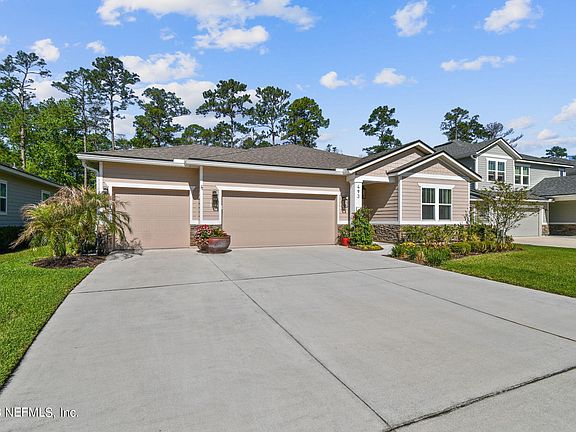 Welcome to luxury living at this beautiful Lakes at Mill Creek Plantation property in St. Johns, Florida! This meticulously maintained, original owner home is straight out of the pages of an interior decorator magazine!! Upon entering the home, you'll immediately notice the gleaming LVP floors, plus the soaring ceilings in the foyer & entry hall leading to a large open-concept living and dining area. Next, you'll spy the panoramic view from the wall of sliding glass doors that lead onto the screened lanai. What a great setting for that summer BBQ or morning cup of coffee! You will also appreciate the bright, open gourmet kitchen, featuring an extended wall of additional cabinetry, double wall-ovens, gas range, large prep island with seating, farmhouse sink with a gooseneck faucet, glass tile custom backsplash, a HUGE walk-in pantry, GE Stainless appliance package, and granite countertops. An entertainer's dream kitchen! Check out the oversized 3-car garage with tankless gas hot water heater, whole house water softener, and a large, open storage area with a sink. Wouldn't this be perfect for that workshop or home-gym? Come back inside to see the three guest bedrooms and two full-size, elegant guest bathrooms. All bedrooms feature "like new" condition luxury carpet and ample closet space. And don't forget the "Pinterest inspired" laundry room, which includes cabinetry for storage, a deep soaking sink with a gooseneck faucet and plenty of counter space for folding clothes. The split-bedroom floor plan, designed for privacy, includes a tranquil retreat primary bedroom with plenty of room for a king-sized bed, a cozy reading nook, and more. Adjoining is a large en-suite bath with natural light, a double vanity, a stunning walk-in glass and tiled shower stall, a private water closet, and a huge walk-in clothes closet. As an added bonus, this. home includes a 1-year buyer's HOME WARRANTY! The Lakes at Mill Creek Plantation is a NO CDD community located in St. Johns County's A-rated school system--convenient to shopping, restaurants, beaches, and area attractions. Take the Virtual Tour or make your appointment for a private showing today!