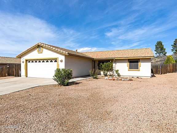 Nestled in the serene hills of Camp Verde, this inviting home offers breathtaking views of the Verde Valley. Step into a spacious living room that seamlessly transitions into a dining room/kitchen combo, featuring elegant granite countertops and ample cabinet space. The home boasts a well-designed split floor plan with 3 bedrooms and 2 full bathrooms. The primary suite includes an oversized closet, en suite bathroom with dual sinks, and sliding door access to the backyard. Outside, enjoy the low-maintenance desert landscaping that enhances the natural beauty of the surroundings. Situated in a thriving community, this property is conveniently located near a grocery store, cafes, shopping centers, and a surplus of dining options.