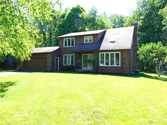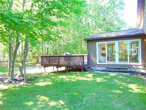 Beautiful, spacious, move-in ready contemporary home on a lovely tree-lined street in Webster. Heated sun room offers bright year round entertaining space with sliding glass doors accessing a spacious deck. Large backyard with play set backs up to untouched forever wild land offering peaceful outdoor space. Open kitchen with eat-in area has plenty of prep space and room to entertain. Cozy living room off the kitchen contains wood-burning fireplace to combat the cold Rochester winter. Sitting room contains vaulted ceiling and skylight providing a perfect area to relax. Upstairs has a nice master bedroom that boasts large walk-in closet and ensuite with 2 more spacious bedrooms and a full bathroom. Partially finished basement offers plenty of storage area and additional space.