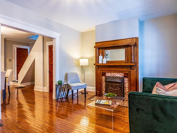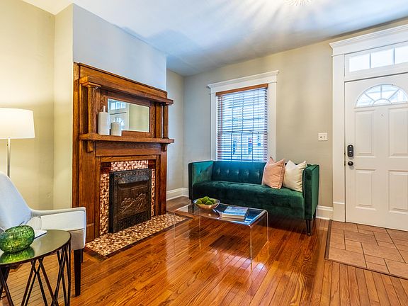 BONUS ROOM & A 2 CAR GARAGE! Enjoy vibrant city living on a charming brick street in Schumacher Place. Features & amenities include hardwood floors; high ceilings; original mouldings; oak mantel; freshly painted interior; updated lighting; ceiling fans; recessed lighting; insulated windows with 2'' blinds; updated kitchen with new gas range, solid surface counters, shaker-style cabinets, under-cabinet lighting, pantry; 2nd floor loft/space perfect for home office, gym, den; dramatic full bathroom with pedestal sink, clawfoot tub, exposed beams, vaulted ceiling, wainscoting; fenced yard; 2 car block garage with opener; sump pump; 200 amp electric; conveniently located near Schiller Park, Children's Hospital, downtown, dining, recreation, nightlife, festivals.