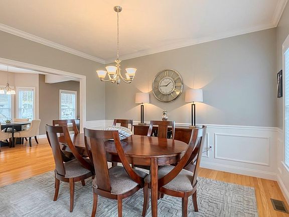 - Din Dscrp: Flooring - Hardwood, Wainscoting, Lighting - Overhead, Crown Molding