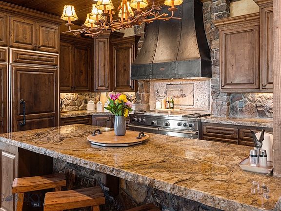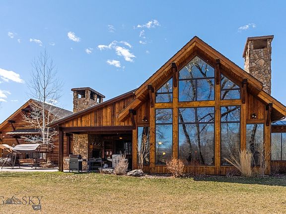 This beautiful custom home sits near the banks of the Big Hole River. It features 5 bedrooms, 4.5 bathrooms on two acres, surrounded by a private ranch under a conservation easement, privacy at its finest. Stunning post and beam style interior features vaulted ceilings enhancing the spacious rooms where views are endless through the huge picture windows. The living room features a gas fireplace, a built-in hutch with a wine and beverage cooler, along with a built in audio system. The kitchen features a gorgeous, custom range hood, built-in espresso machine, and the finest appliances available. Just down the hall from the foyer is a fishing rod display area with built in fly and gear storage drawers. The great room highlights a vintage drift boat on display over the immaculate wet bar, and ample room for entertainment. Spend your mornings or evenings on the patio that features multiple outdoor gas fireplaces, and a built-in grilling area with a covered patio.