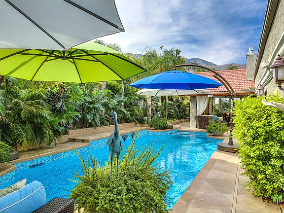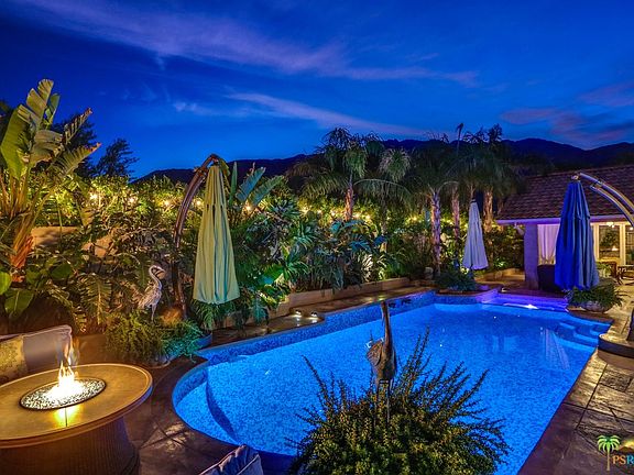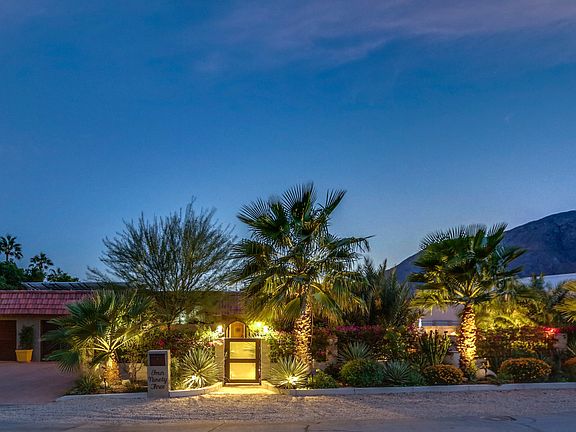 Tucked away on a quiet street in the historic neighborhood of West Racquet Club minutes from downtown Palm springs and right around the corner of the new hip gated community of Icon, this Hacienda style home is sure to impress! No expense was spared to re-imagine this well loved home full of charm & unique details. The comfortable layout features over 2000 sqft of living space with 3 beds/3 baths. The almost infinite list of recent updates include all the major system of the house (roof, plumbing, HVAC), Travertine floors, solid wood doors & custom cabinetry. Outdoors awaits a private exotic oasis perfectly designed for entertaining on all scales with a large spectacular tiled sparking deep pool/spa, fire pit, outdoor fireplace, custom built BBQ, multiple covered outdoor areas to relax and enjoy the artfully designed mature lush landscaping not to forget a striking crystal clear koi pond...truly magical! Fee simple land/No HOA dues and a solar system (2011) with a 20 year prepaid lease