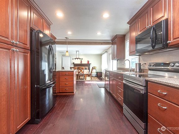 Splendidly updated rambler on a sprawling, meticulously landscaped quarter acre lot. As you arrive you are welcomed by stamped drive, front patio and walkways. Amazing updates include windows, propane fireplace, heat pump with A/C. New kitchen features soft close drawers, pull out shelves and touchless faucet. Enjoy the recently remodeled primary bathroom attached to a spacious bedroom with custom built in dresser and barn door giving access to the walk in closet. Private back yard includes a spacious stamped patio with gazebo. Yard boarders the Stillaguamish Trail. Large shop/shed with new roof and RV parking for multiple recreational vehicles. On a cul-de-sac/dead end street.