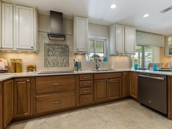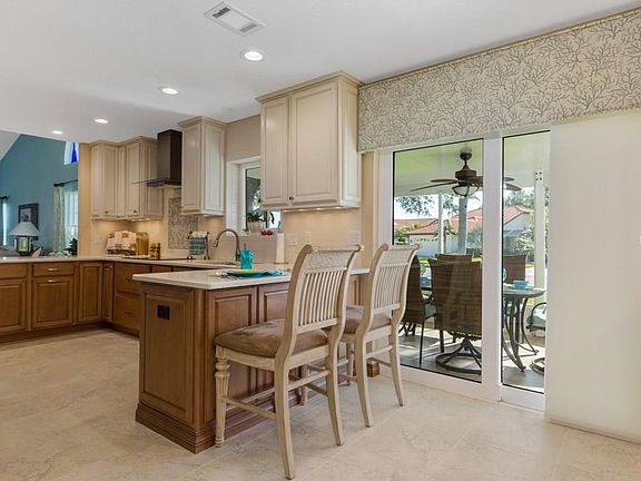 Do you realize what $197,000 in Updates in last FOUR years means? You will need no improvements for a very long time. Just come see, you'll understand. Serene, coastal theme throughout. Entire home recently renovated with quality upgrades. Step into your relaxing retreat in your spa-like bathroom with a soaker tub in master bathroom. Walk-in showers in both bathrooms. Quartz countertops in kitchen, master bath, and wet bar. Kitchen boasts warm neutral tones including built-in oven, microwave, and induction stove top. LED lighting throughout, including under counter in kitchen. Beautiful high end laminate flooring and stunning tile. Windows and doors replaced with PGT high impact glass, as well as new interior doors and trim. New garage door to code. Two spacious Lanais and courtyard for entertaining. Large lot with plenty of room for a pool. Maintenance free includes lawn care, shrub, and palm tree trimming. Active country club community with executive golf course, tennis, and pool. Close to beaches and shopping. Nothing else to do but ENJOY!