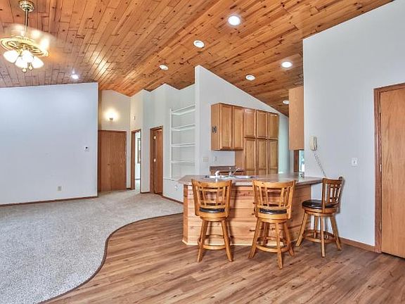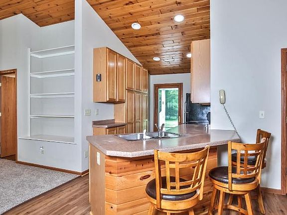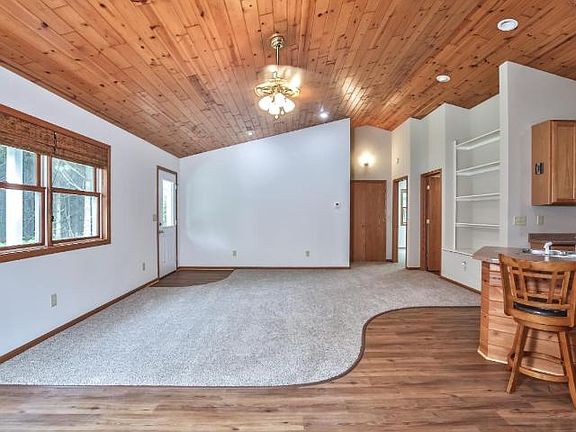 Have you been on the hunt for a starter, retirement, or Up North getaway? This cute, as cute as can be, home could be what you've been searching for! Built in 2002 the 2BR/1BA house sits on 4.5 acres and is located just outside of Eagle River off County G, right down the road from the ATV/snowmobile routes. The open concept home is rustically finished with knotty pine cathedral ceilings and wood trim throughout. The step saver kitchen has plenty of cabinet space and it opens to the backyard patio area. The 1 + car attached garage has extra space for toys along with an extra room that was previously used as a dog kennel but could make a great workshop. Privacy, location, and price- this is a quality package deal.