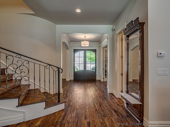 Welcome to a true oasis in the heart of South Tulsa! Tucked away on a quiet street is this custom-built, gated home on a .79 acre lot. Unwind outdoors in the beautiful saltwater pool with waterfall, outdoor kitchen, covered porch, fireplace, cabana & pool bath. Inside this 6027 SF transitional-style home, you’ll find 5 bedrooms—each with access to a bath—including two on the first floor and three on the second, plus 2 half baths, a study, and second-floor game & media rooms. Temperature controlled attic storage. Exceptional quality and finishes with newer interior paint & light fixtures, hand scraped White Oak hardwood floors, wood beams, solid wood doors, custom alder cabinetry, Berloni Italian range, built-in refrigerator/freezer, floor-to-ceiling windows & a spa master bath. The floor plan is designed for entertaining, with the Chef’s kitchen opening to the family room and both casual & formal dining rooms. Part of Jenks Southeast Elementary School, a National Blue Ribbon School.
