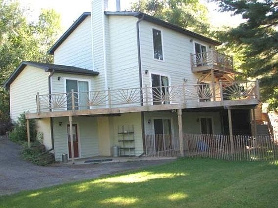 This 3 bedroom, 3 bath contemporary waterfront home has over 1000 feet of frontage on the desirable Boom Lake/Wisconsin River system. This beautiful home features an open style design, updated kitchen, wood burning fireplace, plenty of lakeside decks to enjoy and a spacious family room in the walkout lower level. There are beautiful gardens and extensive landscaping throughout this private 2 acre lot. Other amenities include a 2 car attached garage and a pier to dock the boat