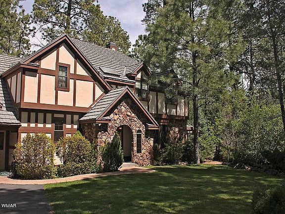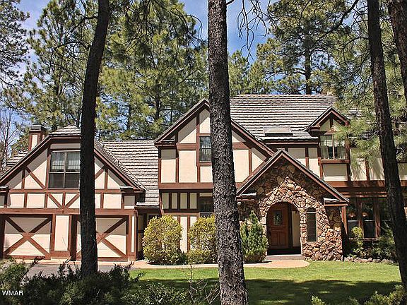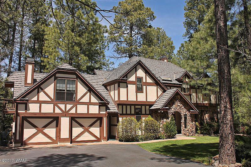 Warm, Rich and Inviting describes this Distinguished English Tudor home nestled in the tall pines with long range fairway views located in the beautiful Pinetop Lakes CC. You will be amazed at the extensive millwork throughout this gorgeous home. Interior boasts 4 fireplaces, billiard room with wet bar, spacious kitchen with sub zero frig, Built-ins & large windows. Exterior offering expansive covered wrap around deck & balcony off guest bedroom to enjoy the beautiful views, metal shingle roofing, landscaping, stone work and much more.