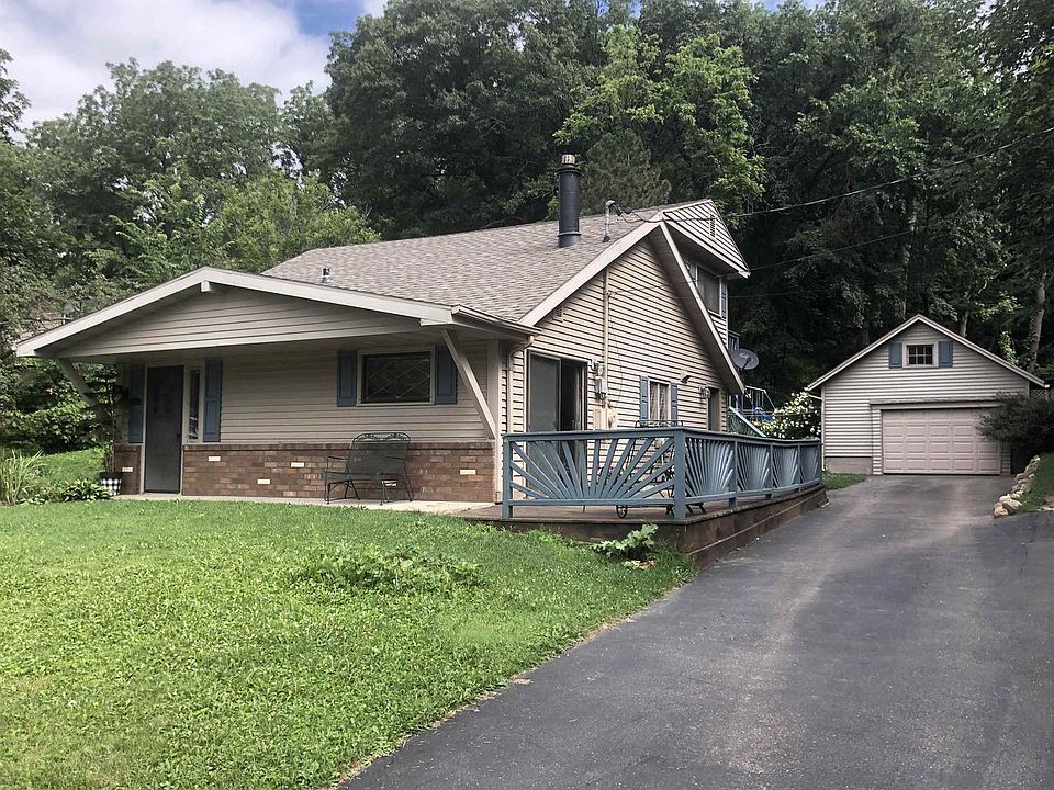 Sellers say "make an Offer"! All Offers seriously considered! Nestled on almost 2.7 acres this home offers the best of everything for all seasons. Summer fun on the water, abundant wildlife in the wooded acreage, vibrant fall color and more! The home boasts a bedroom and bath on each level of the home, main floor laundry, a nicely sized, eat-in kitchen, a living area complete with a wood burning stove just right for staying warm on those cold winter nights and a spacious upper level loft/bedroom area with a deck that overlooks the nature of the backyard. There are great views of the water and the Sellers say it's possible to have your own pier, too!! This home would also make a great Air B & B or VRBO. Stay, play and enjoy!! This home is not in the flood plain!! Sold AS-IS.