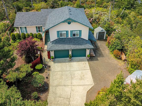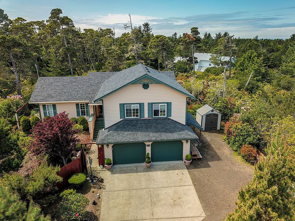PRIVATE-TASTEFULLY REMODELED SPLIT LEVEL-SOUNDS OF THE SURF. Open floor plan. Vaulted ceilings. Wall of windows, skylights. Italian porcelain tile-main level. French doors to master suite. Granite kitchen counters. Stainless steel appliances, island, breakfast nook. Upper level with hardwood floors, tree views. Expansive, private rear deck. 2014 40 yr Roof; new skylights & toilets.