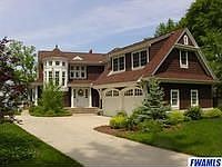 Traditional 3-story with peaceful setting, sandy beach & verandas overlooking the lake. 4 or 5 BR, 2 rec rooms with fireplace, finished walk-out lower level, screened porch, and much more. Built-in speakers throughout home, central vac system, sprinkler system. Kitchen has double ovens.