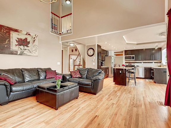 Beautifully updated one of the largest homes in subdivision with 5 bedrooms, 4 bathrooms, office on main level, open floor plan, warm and welcoming! Modern Forevermark paper shake kitchen cabinets with Elegant Kitchen premium quality granite counter tops, large island and travertine backsplash tiles! All stainless steel appliances. Hardwood floors on entire main floor, finished basement with large master suite, bar and entertainment area. Glowing Handscraped V-Groove 12mm laminate flooring throughout basement. Windows replaced and exterior professionally painted in June of 2016. Granite counters in all bathrooms, high ceilings, big landscaped backyard with patio, shed and beautiful custom built gazebo. Three car garage with built in storage. Wonderful mountain views, quiet neighborhood.