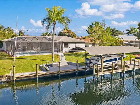 Location, Location, Location. ONLY 1 Block to 200' wide canal all the way to the river. Your ride to the river will be the most picturesque view in Cape Coral. This home has upgraded good cents package. Big Lanai for Entertaining. This Beautiful Home has Split Bedrooms All with walk in closets. It Has Many updates like, CPVC Piping and Newer Roof. Added in 2016 Hurricane Garage Door, Exterior Painting and Refrigerator. Added in 2017 New Pool Enclosure, Security System and complete new 18' X 30' Dock w/Trek Decking, 14,000# Boat Lift, 34' Boat Canopy with Shore Power and Water at Dock. Added in 2018 Window treatments (Some Motorized), Dishwasher, Garbage Disposal, Kitchen Sink, Pool Heater, Pump & Filter and Ring Camera. DONT MISS THIS BEAUTIFUL UPGRADED HOME. This Is Must See Yacht Club Home.