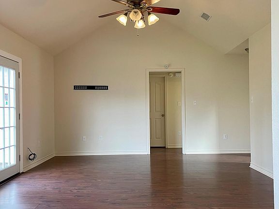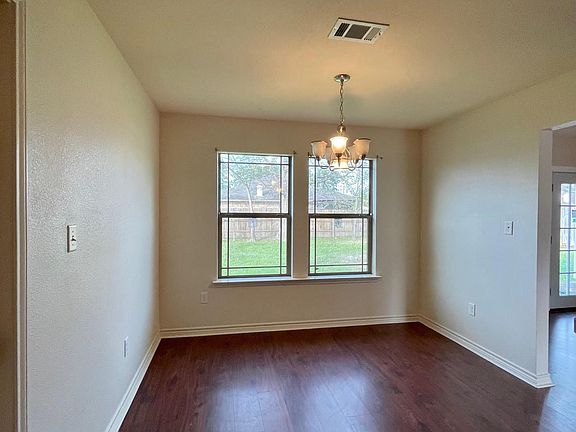 Such a wonderful home for a first time buyer! This 4 bedroom property has fresh paint and newly installed French doors leading to your all fenced in back yard! Built in 2010, this brick home has a large living area featuring a high ceiling with laminate flooring! Split floor plan! The owner's bedroom has space enough for your king size furniture and just wait until you see the bathroom! Double sinks with a garden tub and separate walk in shower! You will love the closet space! The kitchen has bar style seating with good counter top space! There is a perfect size breakfast/dining room located right off the kitchen. The inside spacious laundry room is right before you enter the 2 car garage! A little love will make this a spectacular home!