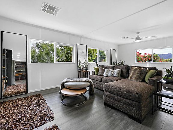 Welcome to this Unique Magical Desert Oasis awaits! Beautifully remodeled with an open floor plan that offers effortless flow on a generous scale. Very open feeling. All new stunning kitchen with custom cabinetry, soft close drawers, Samsung Suite Appliances, designer island with chef sink & faucet, wine cooler, storage, and seating area. Multiple spacious living areas plus a built-in electric fireplace with thermostatic heater. Stylish, Spa-like Bathrooms w/ walk- in showers and generous storage spaces. Bedrooms boast large closets and built-in storage. Amazing outside area! Relax outside around the ZEN firepit on the large, covered side patio that opens to a big, beautifully landscaped, fully fenced yard with mature gardens, fruit trees, grass, and beautiful mountain top views! Private & peaceful, perfect home for pets and privacy. Total Zen feeling! You will not find another home like this one- Come and experience it!Great Location, on a cul-de-sac, close to the pool and clubhouse. Located in one of Palms Deserts most beautiful Mobile Home Parks, Indian Springs! Set directly off Highway 74, this Park is snuggled into the base of the mountains, producing the most magnificent scenery and views of close-up mountains, stunning sunrises, and breathtaking sunsets.