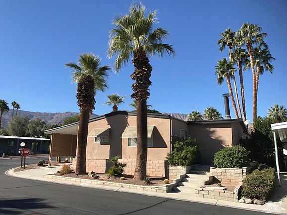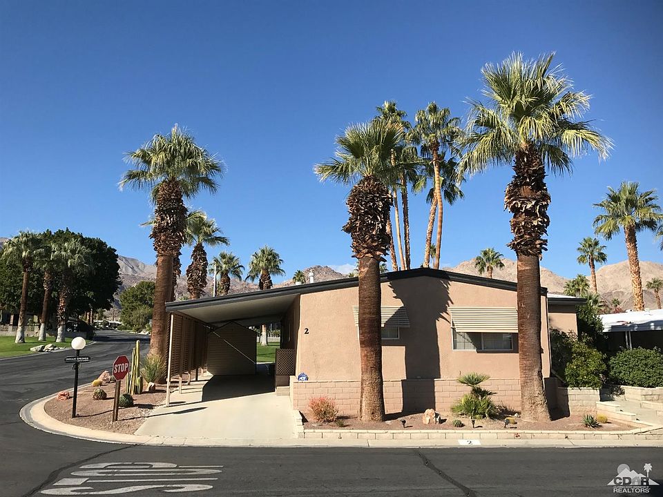 You'll have plenty of room to stretch out in this large, approximately 1,850 square foot, open concept mobile home on a corner lot. The exterior is stuccoed like a traditional home, offers a circular driveway/carport, two patios, a retractable awning and boast beautiful greenbelt and mountain views. It's also close to the Clubhouse and community pool and spa. The interior is just as impressive. It's been dry-walled and the large cook's kitchen has many upgrades, including granite countertops. The bathrooms have also been very tastefully updated. If that weren't enough, the over-sized family room features a cozy fire place for those cold desert winter nights and holiday gatherings. The highly desirable, 55+ Indian Springs mobile home park is located a short distance from the famous El Paseo Drive and from Bighorn, one of the most prestigious country clubs in the desert. Contact park mgmt for park approval, pet rules and to verify $627 a month space rent.