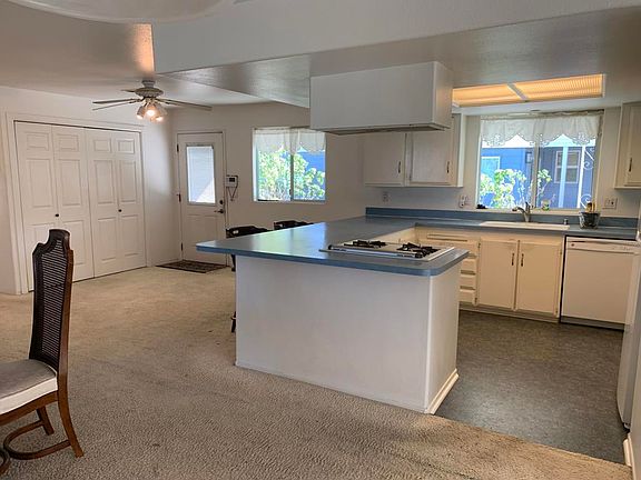 This double wide manufactured home is located on a large, elevated flat lot offering both city lights and mountain views. Mountain views from front and rear yard. A huge backyard with mature desert landscaping and a partially fenced side yard for your furry friends!Fully drywalled interior, shiplap exterior, double insulation, overhead fans and dual pane windows means great energy efficiency during the warmer months. Additional room / office added on to home (approx. 150 Sq.Ft.) with separate wall AC and built-in shelving. Perfect office/craft room! Plus, extra storage is offered with 2 exterior sheds! Master bedroom with walk-in closet & sliders to the spacious back yard! Great open floor plan with spacious kitchen. This home has the Great Bones for your vision and now at a great price.