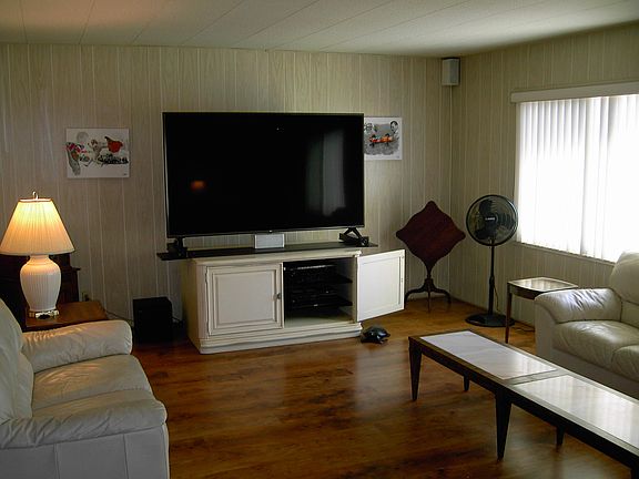 Seller has reduced the price for this lovely 2BR & 2Bath home in Senior Park Indian Springs MHP. Home has many upgrades, but not totally remodeled. Include New double pane windows w/ slider, new laminate flooring thru out except BR's, MB totally remodeled Kitchen has been remodeled, with new counters, new appliances and flooring. There is an open space on the south side of home which provides extended privacy and a peek-a-boo view of the mountains Extended parking to include 3 autos. As seller is in and out, viewing is easy but by appointment only prior to her relocating