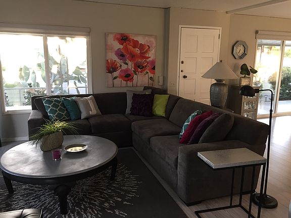 This home is in the community of Indian Springs Mobile Home Park just 2 miles south of Hwy 111 just off of Hwy 74. Tastefully remodeled in late August of 2015 with all new popular modern appliances. Gorgeous views of mountain and city lights. LIving area faces the GREENBELT where you step out the sliding glass doors to patio and just a short walk to clubhouse, pool, and jacuzzi(both heated year round) MUST SEE!
