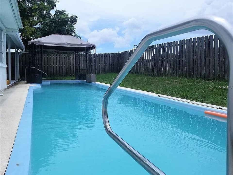 Located on a quiet street with no flood insurance requirements, this 2 bedroom pool home offers an oversized bonus room that could easily be used as a 3rd bedroom. Second full bathroom off of the bonus room, would make for a great Master Suite! Nice front porch with large shade trees, locked privacy fence securely enclosing the backyard and pool. No rear neighbors! Cash or conventional offers only. Schedule your showing today!