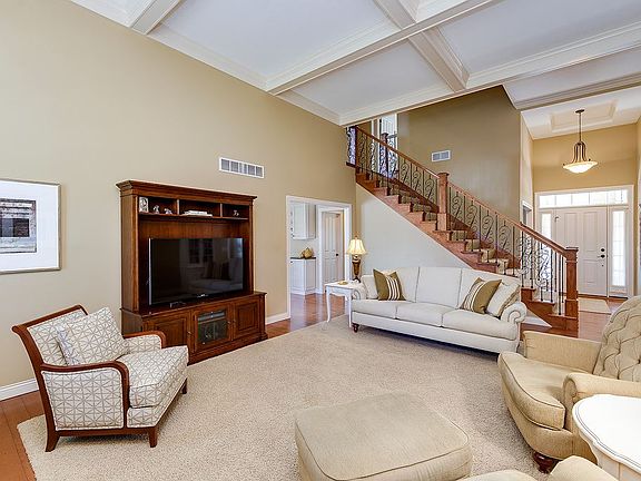 Stunning one owner 1.5 story, meticulously maintained. Beautiful cathedral 13 ft ceiling, in the main level great room with gas lighter wood burning Frpl. Gorgeous white cabinetry, with pull out shelves, custom cabinet for hood fan, granite tops, and stainless appliances. Formal dining room, or could be office. Spacious Master bedroom with tray ceiling. Master bath has soaker tub, dual vanity and walk in closet. Beautiful staircase with decorative spindles take you upstairs, where you will find two spacious bedrooms and full bath. Custom window treatments thruout the home. New maintenance free deck, plus a patio, to enjoy your beautiful private back yard. Lower level professionally finished, with rec room and tons of storage. Impeccable landscaping, across the back lot line. Garage is oversized with the tandem 3rd stall, and garage shelving stays. On a Cul-de-sac in Schaefer farms. Close to park, bike path, and grocery shopping. You won't be disappointed in this beautiful home.