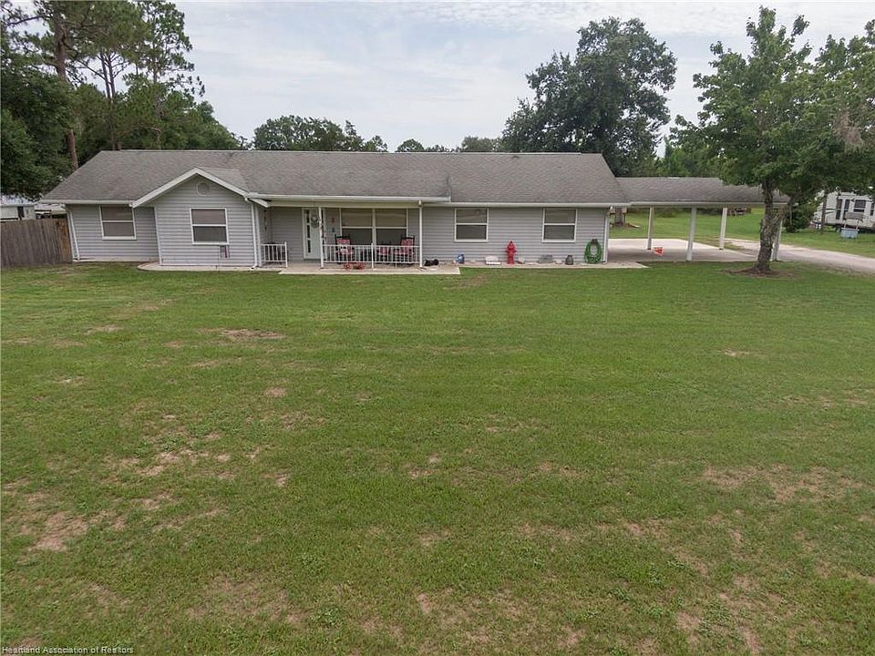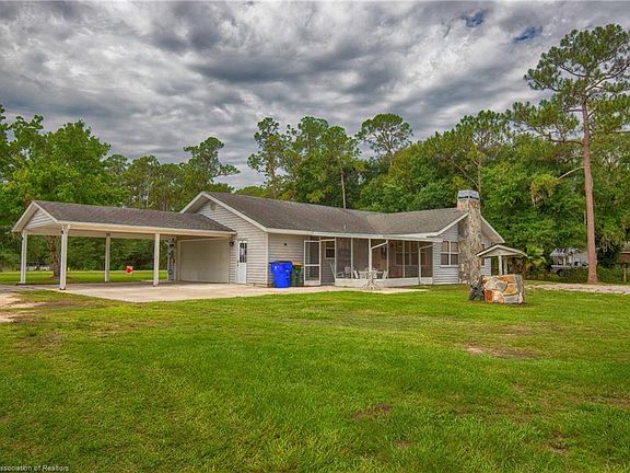 An Open Front Porch welcomes you to this Real Country Style Charmer on 2+ Acres, Crossed Fenced, and a Pond, Dotted By Oaks. This 3 Bedroom home has 2 Full Baths. Enhanced Living Room, Dining, Kitchen areas with Cathedral Ceilings. Family Room with Cozy Stone Fireplace opens out to the Screened Veranda abd an Open Cement patio!. An Oversized 2 Car Garage which is 24 x 26, with lots of Storage and an Attached Carport! This home has been Well maintained and Fully Painted, Even the Ceilings in 2017! in 2019 Solid Surface Counter Tops in Hug Kitchen!!! A Huge Red Barn with its own Open Country Porch, All with Electric-n-Water, Attached Pole Barn Area Cemented and an Outdoor Kitchen Area. In Avon Park on Paved Road in the Country Zoned Agricultural! Pet Free Home! Any animals are outdoors Pets and Chickens Ready for your family and Your Mini-Farm ideas And GO!!!! Septic is in Front Yard if you want to put in a POOL!