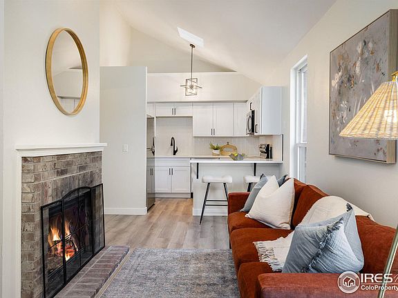 Welcome to this beautifully remodeled 2-bedroom, 1-bath ground-floor condo in a prime location! Step inside to discover a modern all white kitchen with new cabinets and quartz countertops in front of a well-matched herringbone style backsplash. Light wood finished LVP flooring flows through the living area and the wood burning fire place is sure to get great use in the coming seasons. The enclosed patio off the bedrooms offers a unique space to enjoy as you see fit year round. Situated just minutes from I-70 and Olde Town Arvada, this condo offers both convenience and charm. With updated finishes throughout, this home is move-in ready. A/C unit is brand new, water heater and furnace both replaced in recent years.
