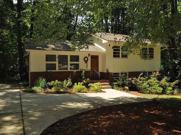 Move in ready home on large wooded lot, remodeled kitchen w/new cabinets, granite counter tops, sink, faucet, smooth top stove, dishwasher & flooring; original hardwood floors, lower level w/bdrm & family rm w/updated carpet & built-in bookcases; new floors in baths, whole house re-piped, large deck w/built-in seats, convenient to major highways, RTP, shopping & Lake Johnson.