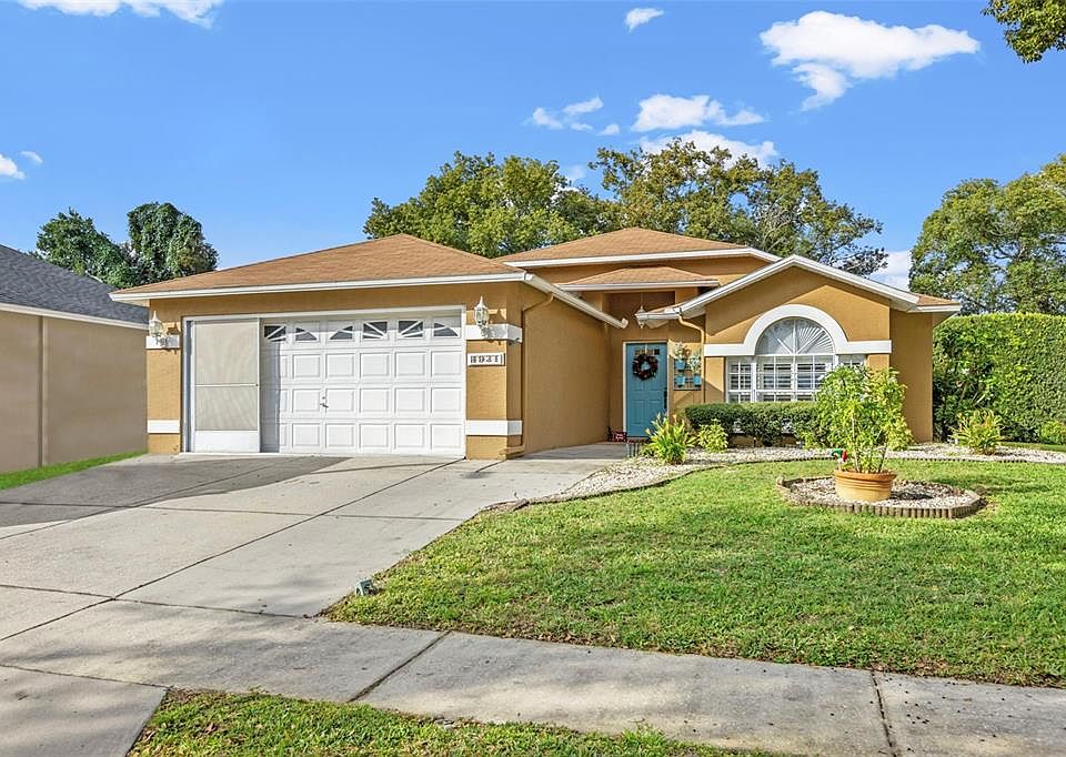 Pool home in the Southern Oaks Community that borders the Starkey Wilderness Preserve! This well maintained, clean and bright home has an open style, split bedroom floor plan. Walking through the front door you have a view of the beautiful pool and large backyard area. Vaulted ceilings with the mirrored wall really make this home's main living space feel very spacious. The kitchen of this home has great qualities as in a fresh update with tile backsplash, painted cabinets, and stainless steel appliances. Enjoy the option of having meals in your kitchen nook area or at the kitchen counter from the dining area. The primary bedroom features a walk-in closet and ensuite bathroom with double sinks. Relax and have a cup of coffee or glass of wine on your screened in lanai overlooking the pool. This outdoor space has enough room to make it a small dining or lounging area, your choice. There is a half bathroom for convenience when outside or using the pool. Beautiful pavers right outside of screened enclosure make additional options for entertainment or activities while still enough room to play in the grassy backyard that is bordered by landscape and a fence. This home is located only 5 minutes to Starkey Wilderness Park. There you can enjoy a playground, picnic areas, hiking, biking and equestrian trials. Enjoy a blend of shopping and dining options that are about 10 minutes from this home. 40 minutes to Tampa International Airport for travel, 35 minutes to Dunedin and beaches and 25 minutes to Tarpon Springs. Come take a tour of this beautiful home and fall in love with being in the heart of some of Florida's nature and easy access to travel, shopping and dining!