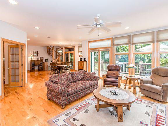 This BEAUTIFUL 1.5 Story "Tree House" home is a once-in-a-lifetime opportunity!!! Nature surrounds this nearly 1-acre lot! Remarkable, unique architecture with soaring ceilings, tons of natural light, one of a kind circular wooden stairway that extends from the finished walkout basement to 3rd story observation tower! Gourmet Kitchen has Viking Oven / Gas Range & hood! 2nd story has 3 Large spare bedrooms and beautiful Office w/ stunning custom woodwork, shelving & ladder! 3 car garage w/ suspended garage for more storage and garage door! 2 tier, Finished lower level with full bath, wet bar, and covered deck!!! There is so much more to explore on this amazing KC property! Pictures will never do it justice! WELCOME HOME!!! Chicken coop remains with property on the south side of the house and under the lower level deck. 2021-09-13