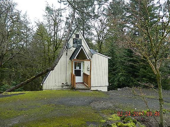 Fantastic location for this A frame home located on .29 acres of wooded views and creek below. Main level with living room, kitchen and full bathroom. Nice size bedroom on lower level with full bathroom, walk in closet and access to private deck. Upper level perfect for extra space. Great cozy home or possible expansion for dream home. NEW roof.