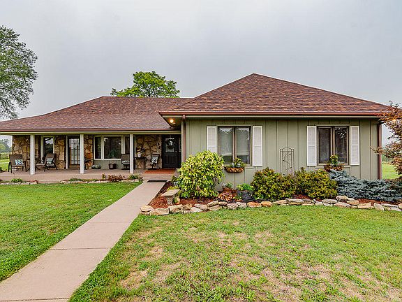 This home includes 2451 SF built in 1987, 944 SF built in 1930, remolded in '80, '87 & '06 . It has a total of about 3395 square feet of living space. The main level includes the living , kitchen, formal dining, laundry, 4 bedrooms, 2 baths + a bonus room up. Just off the living room is a large covered patio. The front has a covered concrete porch with plenty of room to relax on. There is lots of room downstairs currently used for 2 office's and extra living space. The exterior of the home is of stone and wood. The furnace is a dual fuel high efficiency unit. It sits about 350' off of Hwy 125 S and there is room to grow here for a shop, etc. to fit your needs on this 23 acre place. There are 4 separate pastures with water for rotational grazing.