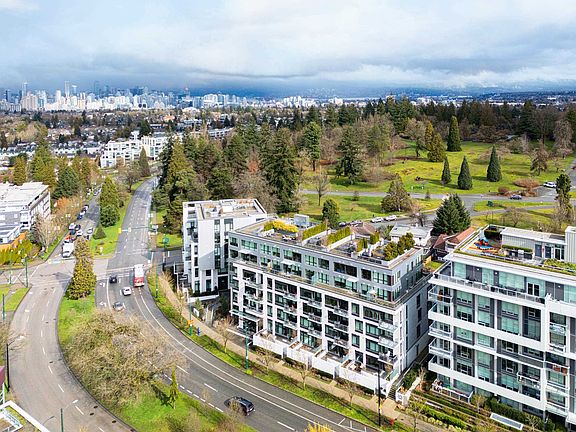 Patio Lovers & boutique park-side living at Primrose-right next to Queen Elizabeth Park.Rare above ground level Townhouse style apartment has dual suite access from interior of building & from patio-for ultimate convenience. Exclusive 239 sf patio for combined living of 1,057 sf.This elegant 2 Bed/2Bath offers the perfect location to the BEST of Vancouver-minutes to Oakridge Shopping Mecca, Downtown, groceries, restaurants, Eric Hamber Secondary & Skytrain. LEED Platinum concrete construction boasting exquisite aesthetics & finishings: 9’ ceilings,Italian bespoke cabinetry, Miele & Euro applnces w/ gas stove, wide plank laminate flrs, AIR CONDITIONING, massive patio for gardening, bbq’s & entertainment, quartz countertops, Full-size front -load W/D, spa-bathrooms,1EV-ready PRKG & 2 lockers