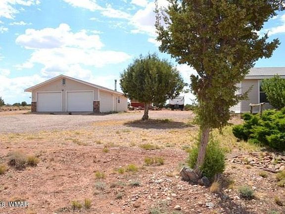 Great location just off the Concho Highway, 3 bed, 2 bath plus den. Front deck with awning. Recently added water filtration system, and tankless water heater. Home is in good condition. Mud room/entry room into house. Large 2 car garage with attic storage and workshop off the rear - workshop has swamp cooler and wood burning stove (1053 sq ft total). There is also a 2 horse barn, with hay storage area and tack room (360 sq ft total), barn has metal roof. Round pen. The 20 acres is fully fenced, with the house and 1.5 acres separately fenced. 3 x sheds, well house well insulated with pressure tank. Covered orchard with 2 apple, 2 peach, and 1 cherry tree. Front lawn has automatic sprinklers. Fenced trash area. Panoramic views to the East and South. Country living close to town!