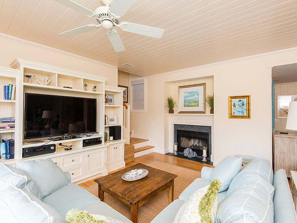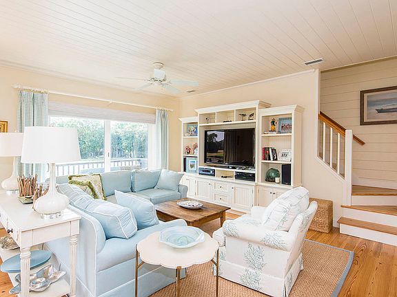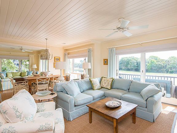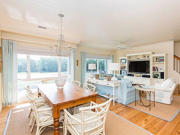 Completely renovated by Bob Meister, this three-bedroom, townhouse-style villa enjoys stunning lagoon views out to Turtle Point's No. 18 fairway and is located within an easy stroll to Kiawah's 10-mile beach, Sanctuary Hotel, and Turtle Point Clubhouse. Professionally decorated and offered furnished, this villa features refreshing seaside upgrades including gorgeous wide plank floors, crisp trims and moldings, shiplap detailing, beadboard ceilings, coastal casual furnishings, floor-to-ceiling windows, and sliding glass doors that lead out to the expansive deck. The great room combines the living and dining areas. The entire space is open to the kitchen and a spacious enclosed sunroom that serves to expand the shared living space. Embraced by oversized windows, the sunroom feels as if it is floating on the lagoon. The kitchen has been completely upgraded with hardwood flooring, custom and glass-front soft-close cabinetry, marble counters, and a marble-topped pass-through with elevated bar seating. Stainless steel appliances include a KitchenAid® side-by-side refrigerator. Two generously sized bedrooms with large closets and private, stone-appointed bathrooms complete the first level and offer family and guests every comfort. The upstairs level is devoted entirely to the private master suite. Peaceful and bright, the bedroom features shiplap walls, two large closets, custom built-in furnishings, and ample space for a sitting area. Sliding glass doors open out to a private balcony that overlooks the lagoon and golf course. The master bath features a marble-topped vanity, travertine floors, and a travertine-tiled walk-in shower with frameless glass doors. Never rented and in immaculate condition, this villa has no neighbors above, enjoys ultra privacy, and offers fabulous views. Additional features include in-unit laundry in the master bath.