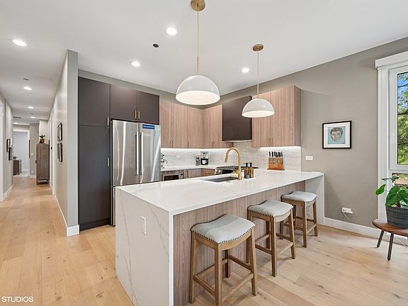 AVAILABLE NOW! Welcome to this modern 3 BD, 2 BA condo in a boutique building built in 2023. Designed with comfort and style in mind, the open floor plan features an extra-wide living and dining area-perfect for entertaining or simply relaxing at home. Step out from the living room onto a private front balcony that spans the width of the unit, with durable composite decking and peaceful treetop views. The chef's kitchen is equipped with custom cabinetry, quartz countertops, and a spacious breakfast bar for casual dining. The king-sized primary suite includes a walk-in closet with custom organizers, remote-controlled blackout blinds, and a luxurious ensuite bath with dual sinks and heated floors. Two additional bedrooms are generously sized and feature built-in closet systems for maximum storage. Additional highlights include fresh paint (2025), custom Hunter Douglas remote blinds in the main living area, and a designer ceiling fan in the primary bedroom. 1 garage parking space is included in the rent. Located in the heart of Uptown, you're just steps from the Argyle Red Line, the 36 Broadway bus, a short walk from Andersonville and neighborhood favorites like Tank Noodle, Sun Wah BBQ, and First Sip Cafe. The perfect blend of modern living and unbeatable convenience.