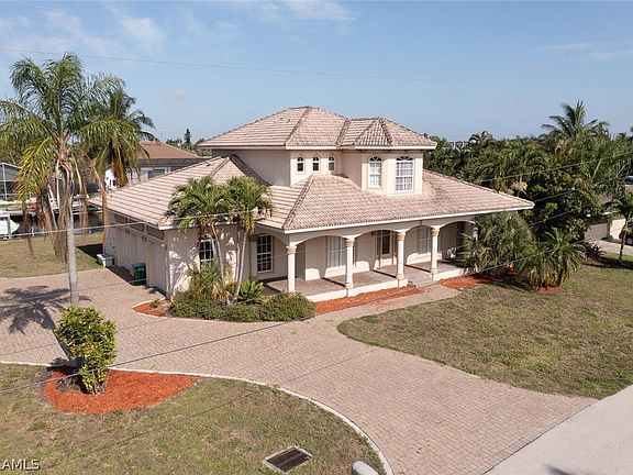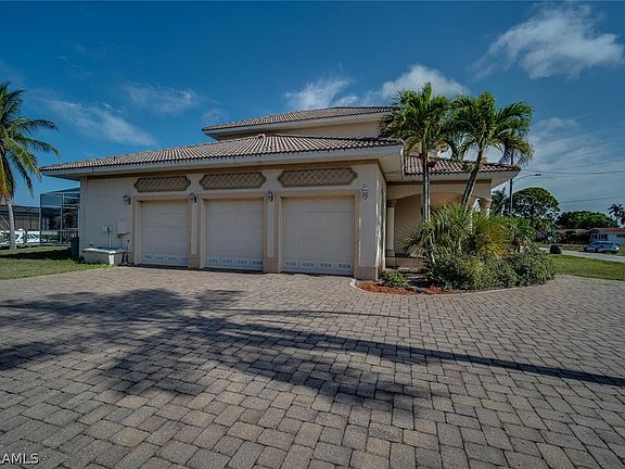 Location, location, location! Stones throw from the river. This beautiful 4 bedroom/4 bath 2-story pool home has prime water frontage. Sitting on a full 3 lot site, sailboat access properties like this are rare to find. There is a main floor master bedroom, large kitchen with solid cherry wood cabinets & granite counter tops, eating area, separate dining room, living room, and bedroom which can be used as an office, full bathroom, & large laundry room. Upstairs there 2 guest bedrooms both with private bathrooms. Enjoy your large screened in lanai with pool & spa. An added bonus is the large 3 car garage and 14k pound aluminum golden boat lift. In addition to great water access, conveniently located close to the Cape Coral bridge, CC Yacht Club, restaurants, shopping, & more. **No Water in home from hurricane!! Great sturdy home in amazing location!!