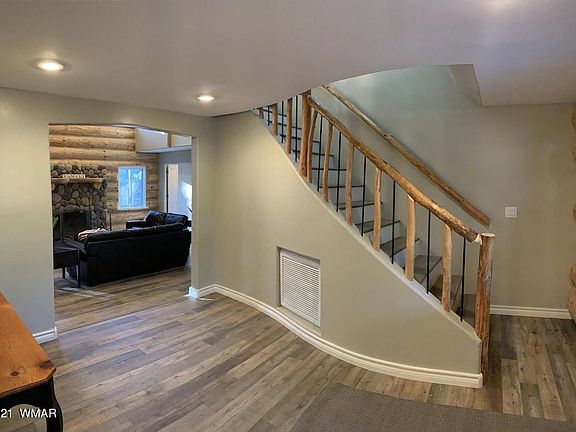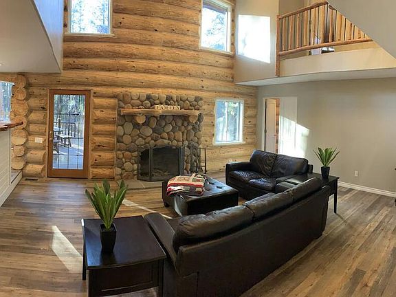 Custom Log Home in The Pines! Newly renovated with all modern appliances, granite countertops, and flooring.Located on a beautiful Ponderosa property just minutes away from local shopping and restaurants but secluded enough, you would never know.This custom 4 bedroom 4 bathroom home has one bath dedicated to each bedroom with an easily accessible bathroom on the main level.Main level is open and spacious with all living areas and kitchen, laundry as well as one of the 4 bedrooms and bathroom with walk in shower.Great Room opens onto a large railed deck in the back of the 1.3-acre Ponderosa Pine Property.The Second level has: 3 bedrooms including Master Bedroom with a queen-sized bed, large master bathroom with soaker tub and walk-in shower, double vanity, and gas fireplace.