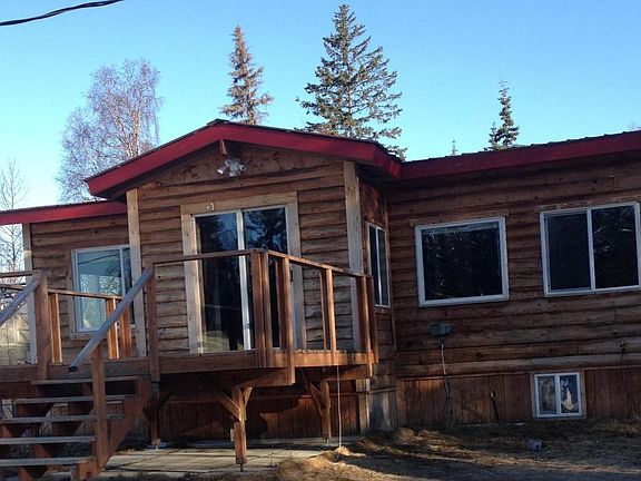 Alaskan log home with an unfinished basement and potential to build equity.Cute two bedroom home with, country kitchen, bathroom recently remodeled, jetted tub and stackable washer/dryer, large open livingroom with vaulted ceilings and woodstove. Greenhouse and a fenced garden, covered parking and much much more.