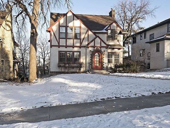 Beautiful two story tudor with incredible charm and character located in the Tangletown neighborhood of Southwest Minneapolis. Light and bright rooms with gorgeous original woodwork, archways and hardwood floors. Spacious living room with beautiful windows and gas fireplace, formal dining room, sun room and updated kitchen with stainless steel appliances and honed granite countertops. All three bedrooms on one level, upper level porch has downtown Minneapolis skyline views. Unfinished lower level is waiting for future expansion and additional square feet. The front door of this home was featured in The doors of Tangletown: a historical reflection of Washburn Park, by Elizabeth A Vandam. Close to popular neighborhood restaurants and shopping including; Wise Acre, Sunstreet Breads, Tangletown Gardens and Kings Wine Bar. Nearby parks include Fuller Park, Pearl Park and McRae Park. Easyaccess to freeways, public transit and bike lanes. Area schools; Burroughs Elementary School, Ramsey Middle School, and Washburn High School.