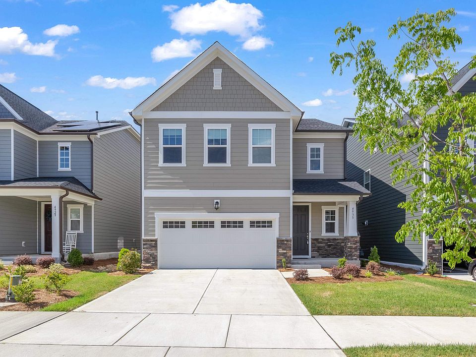 LOCATION , LOCATION, LOCATION !! Just like NEW!! STUNNING 2021 built smart home with many upgrades in Highly Desirable 5401 North!! First floor open floor plan offers spacious living room w dining space ,crown molding ,gourmet kitchen with quartz countertop ,GE stainless steel appliances ,big pantry, mud room, 1st floor guest bedroom with full bath and gorgeous screened porch backing to woods. Upstairs you are greeted by huge loft for entertainment .Lovely primary bedroom w/opulent suite featuring shower, dual vanities, tub & huge walk in closet. 2 secondary bedrooms each have walk in closet. Tankless water heater. Screened porch , family and bedrooms are prewired for fan. 5401 features clubhouse, farm, brewery, pool with cabana, playgrounds, gym, pond, dog park, greenway trail, day care , cafe , dental clinic , elementary and middle schools in the neighborhood! HOA cuts grass!