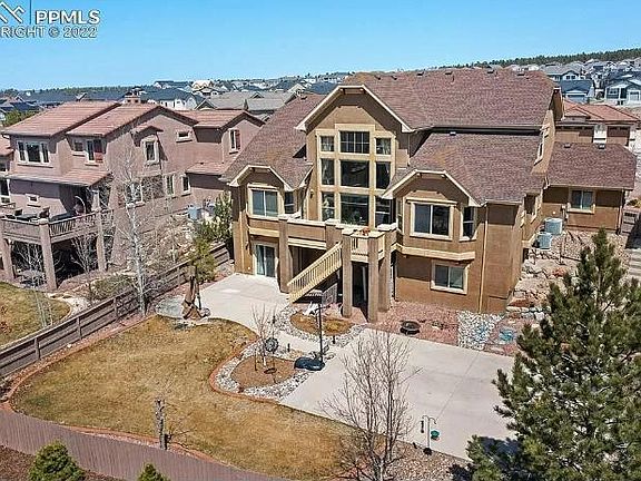 Gorgeous Saddletree Home in desirable Cordera with amazing views of Pikes Peak and the front range! The grand entrance leads into a vaulted great room with huge picture windows and shining wood floors. The huge kitchen has an eat-in nook with plantation shutters and a walk-out to the deck. A huge island with bar seating and gorgeous stone countertops, with plenty of room for entertaining. The main level master bedroom shares breathtaking views and has its own access to the deck and a spacious walk-in closet. The grand staircase leads to the large loft and two upstairs bedrooms. In the basement, you'll enjoy plenty of room for a pool table or ping pong and a built-in theater with a hidden media closet and theater lighting. The walk-out basement has three more large bedrooms MAKING THIS A TRUE 6 BEDROOMS HOME! The backyard features a huge patio as well as a large concrete pad perfect for the basketball or pickleball enthusiast! Desirable Chinook Middle School is a short walk away! Easy access to I-25, Pete Field, New Hospitals & YMCA, and Gyms. You'll love Cordera, & You'll love this Special HOME!! Now for all the extras... Built-ins in the loft 'Hand Scraped' Hardwood Floors Built-ins in Laundry Security System Wet Bar in Basement Sit-in Shower and Soaker Tub in Master Tons of Storage Theater wired for surround and projector Two Water Heaters, Furnaces and Central Air Compressors.