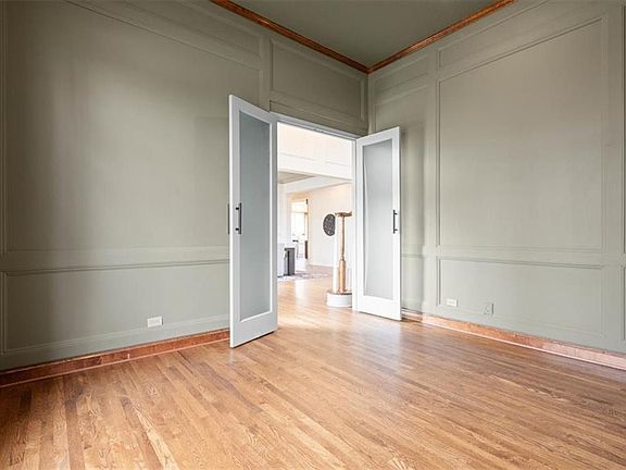 A complete remodel that has been thoughtfully designed for a timeless appeal. Through the front door you will notice all the natural light, grand entrance and new hardwood floors. To your right is your home office with frosted glass doors and 12-foot ceilings with custom moulding.