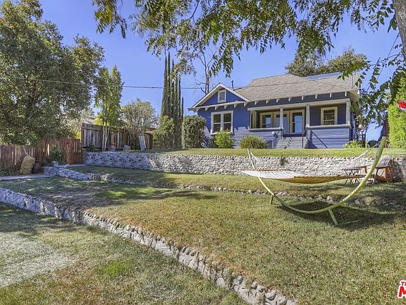Welcome to this 1903 Craftsman arts and crafts home, one of the most Unique properties in Eagle Rock!. This 4 bedrooms and 3 bath home is perched above a river rock bordered wall with an expansive and usable 10,000 sq ft yard with hillside neighborhood views. This elusive Farm House pictured right out of a novel with a covered porch just beckoning a swing! First floor living room with high ceilings, recessed lights and vintage lighting, original double pocket doors open to the dining area with built-in cabinet. First floor primary bedroom with on suite bathroom with marble tile, double vanity, separate tub and enclosed shower. Primary opens up to the large rear deck. Small Bedroom w closet. Storage under the stairs. Hallway bathroom with enclosed shower. Washer Dryer nook in hallway. Updated kitchen is equipped with stainless steel appliances, quartz counters, gas stove and dishwasher. Double basin sink and granite counters. Rear deck off of the kitchen is under a large California Oak tree, the deck wraps around the tree and is perfect for relaxing in the shade. The second floor is home to 2 bedrooms, each with recessed lighting and closets. Full bathroom with glass enclosed shower over a deep soaking tub. Close to Rockdale Magnet and Dhalia Elementary. Large grassy yard that is fully fenced in. Additional storage shed provided on the side of the home, approx. 8x10. No driveway. Central heat and air. 2100 sq ft. Home was renovated top to bottom in 2020.