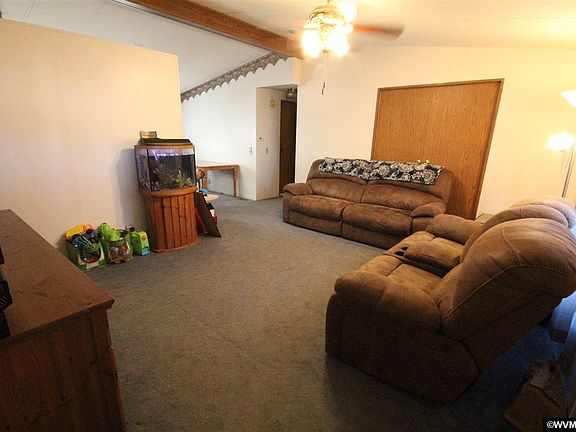 Accepted Offer with Contingencies. Affordable home on large lot in scenic Sweet Home! Skylight in the nice sized kitchen, inside utility with good storage, raised beds, fruit trees, back deck, workshop, roof on house is approx 5 years old, new furnace installed approx 6 years ago, double carport. New a/c unit installed last year.