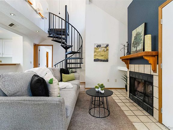 Discover this immaculate 2 bed, 1 bath condo featuring breathtaking vaulted ceilings in the highly desirable Ivy Hill community, perfectly situated just minutes from the natural beauty of Cherry Creek State Park! This home offers not just a prime location, but a lifestyle surrounded by fantastic shopping, dining, and recreation opportunities, with the added convenience of being close to the Denver Tech Center. Step inside to be greeted by an abundance of natural light that highlights the expansive vaulted ceilings, creating an open and airy atmosphere throughout. The living space is enhanced by a charming spiral staircase that adds a unique architectural touch, while the wood-burning fireplace provides warmth and coziness during cooler Colorado evenings. The open-concept kitchen and dining area are perfect for both everyday meals and entertaining guests, with plenty of room to enjoy culinary creations. The in-unit laundry adds to the convenience of this well-appointed home, making daily chores a breeze. Parking is never a concern, as this condo comes with a 1-car detached garage and an additional reserved parking space, providing ample room for vehicles and storage. Located within the award-winning Cherry Creek School District,