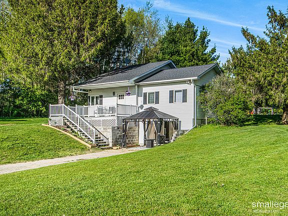 Nestled off South Monroe just outside Greenville, this quaint 3 bed / 1.5 bath home sits on nearly 2.5 acres of green space, complete with a detached 24'x40' two-stall pole barn garage, and featuring front and back decks, fire pit, and play set. The open-concept kitchen and living space are complimented by vaulted ceilings and skylights giving the main floor a great-room feel, full of natural light, with new floors and other modern updates bringing this mid-1900's home into the 2020's. The lower-level master bedroom features walkout patio doors and a half bath with easy access to laundry, also connecting to a bonus room fit to be an office or play area. Showings begin Friday, May 14th at 9am and end Monday afternoon. Schedule your showing today! All offers due by 5/17 at 4pm.