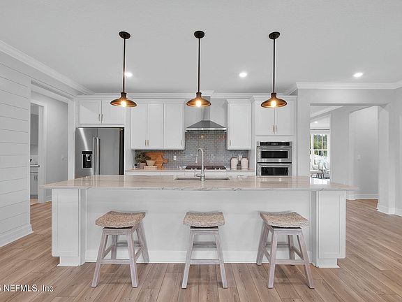 Step into the beautifully designed Ashby home, showcasing our elegant Traditional Elevation. This spacious new construction offers 4 bedrooms, 3 bathrooms, a 3-Car Garage, Floor Outlets, and generous storage throughout—perfect for comfortable everyday living. At the heart of the home is a Gourmet Kitchen featuring Built-In Whirlpool Stainless-Steel Appliances, upgraded 42'' White Cabinets, a stylish White Diamond Herringbone Tile Backsplash, Quartz Countertops, and a large Island. The Kitchen flows seamlessly into the Café and a bright Gathering Room with a Tray Ceiling, creating a warm and welcoming space. Pocket Sliding Glass Doors extend your living area to a Covered Lanai, ideal for indoor/outdoor entertaining. The private Owner's Suite provides a relaxing retreat with a Walk-In Shower, Dual-Sink Vanity, Linen Closet, and Walk-In Closet. Plus, enjoy added comfort and convenience with our Smart Home package, including a Nest Doorbell and Thermostat.